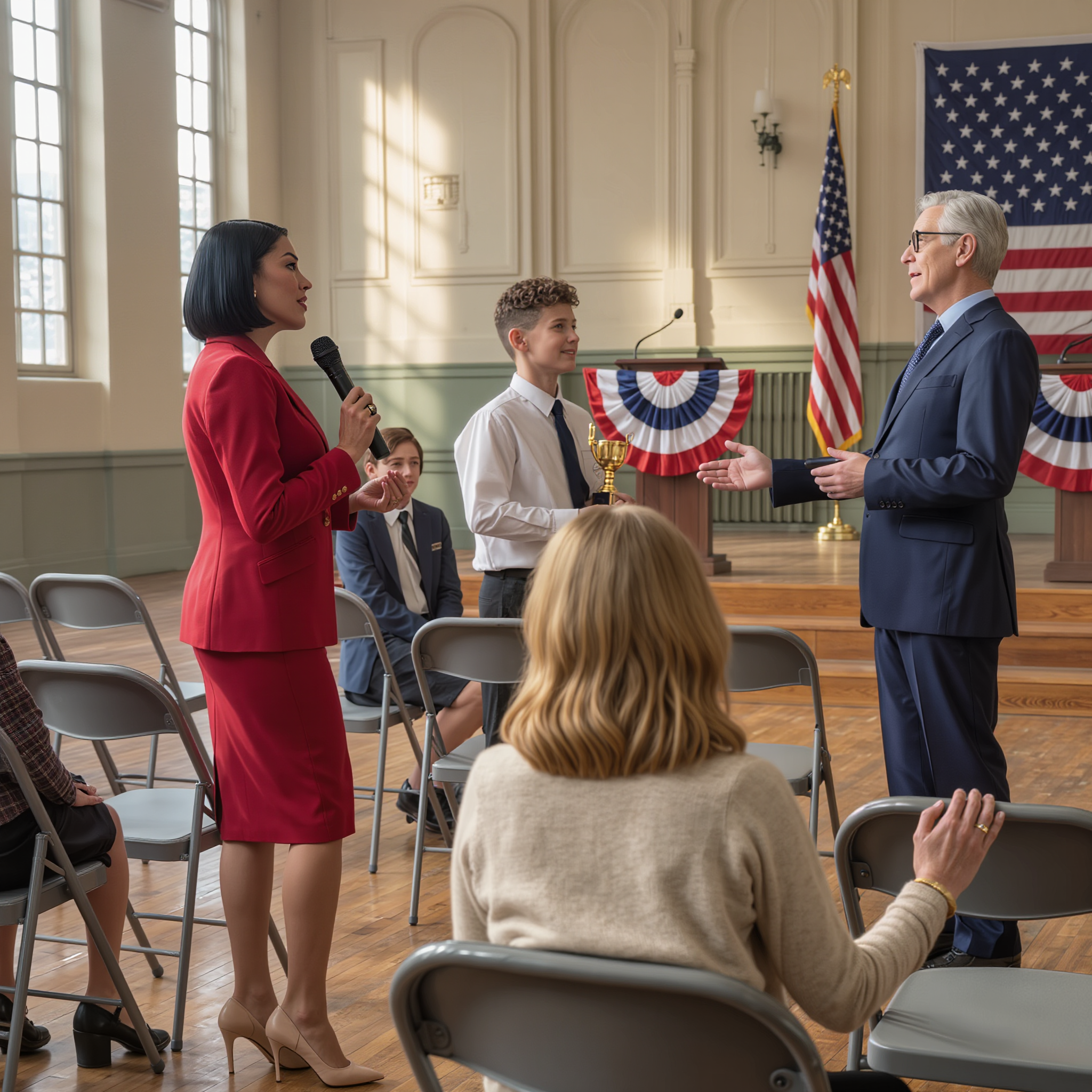 The other award recipients sat alongside Marcus, each representing months of dedication and hard work. The principal had already announced three awards, and the audience applauded warmly for each student. It was the kind of ceremony that made you believe effort mattered, that kids were still allowed to be proud of themselves.