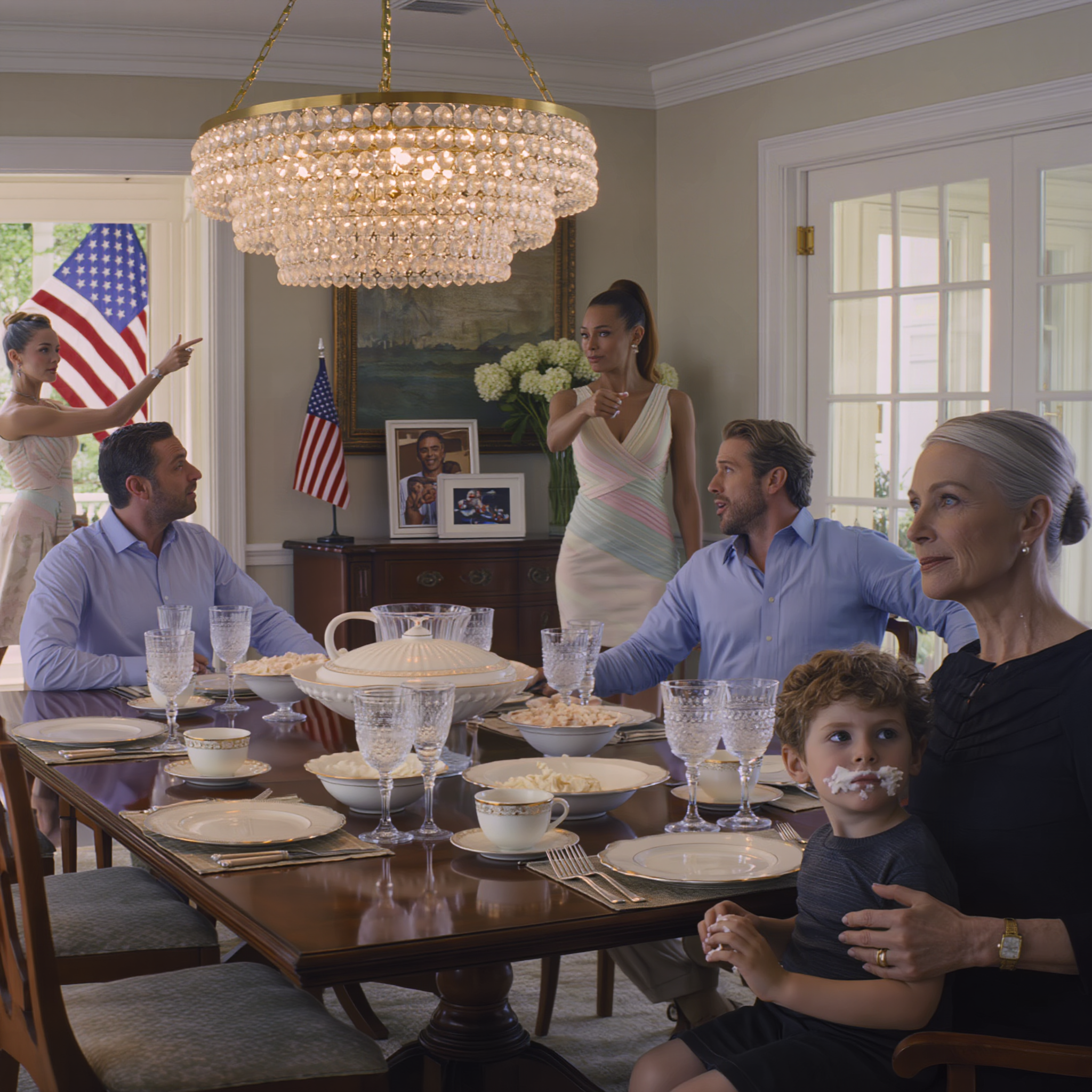 “Security!” she called out loudly, though there was no security present. “Could you please escort this woman out? She’s disturbing our family dinner.”