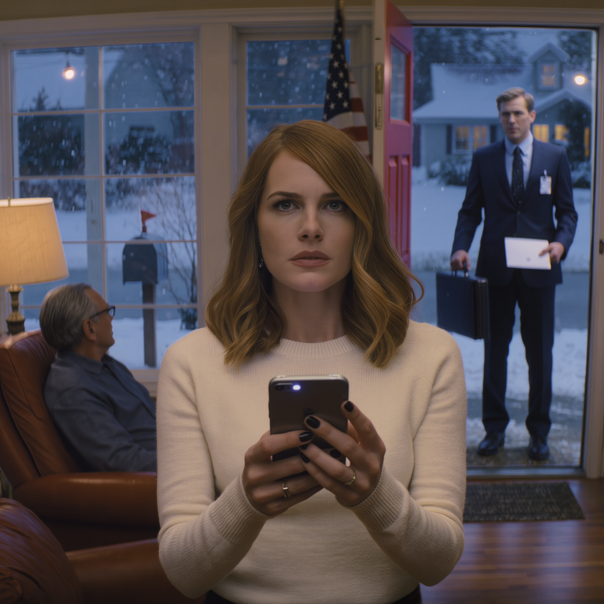 The man at the door wore a navy-blue suit and held a thin briefcase. His badge gleamed under the porch light.