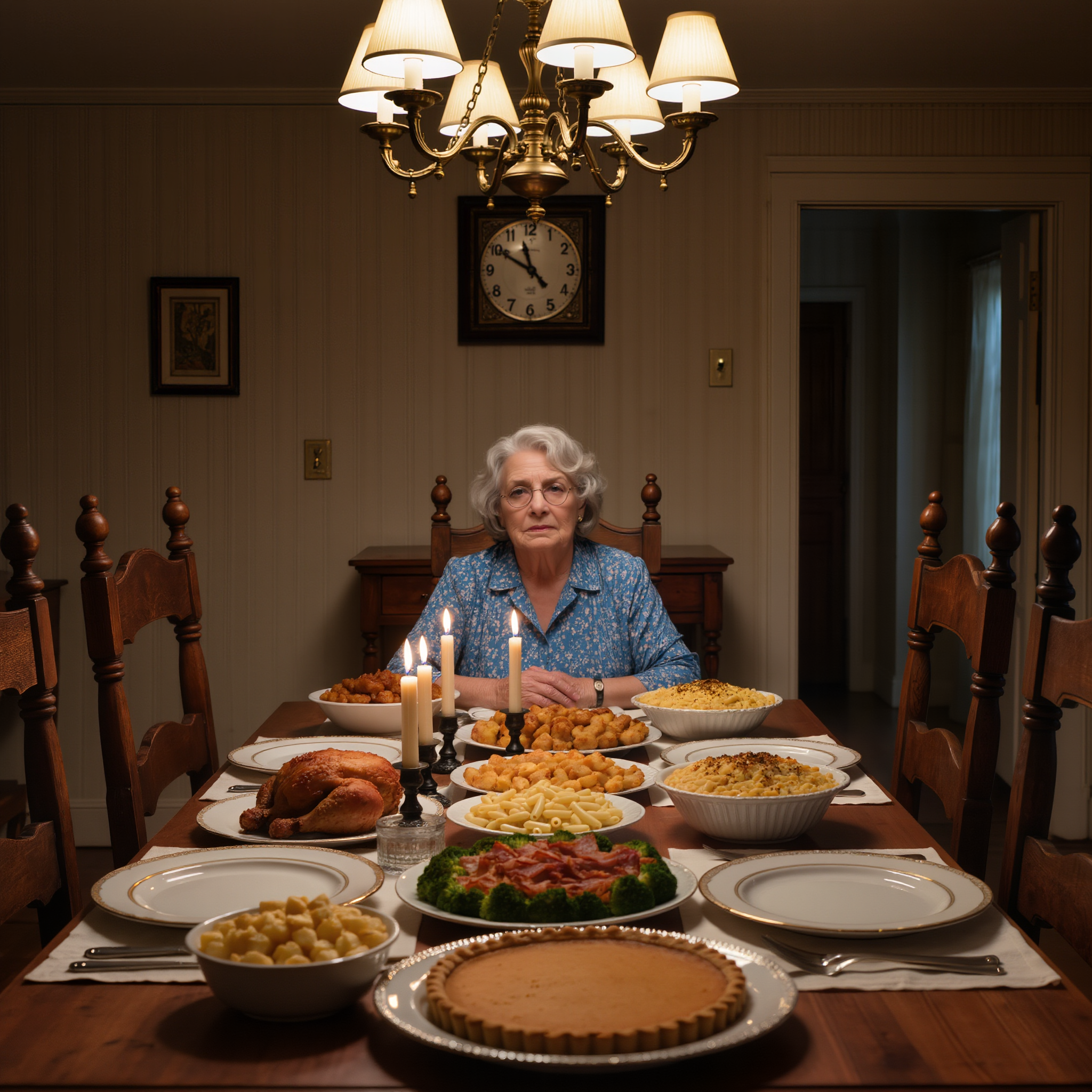 I dressed in the blue floral dress my husband used to say made me look ten years younger. I curled my hair, put on a little lipstick. I lit the tall candles I usually saved for Easter dinner.
