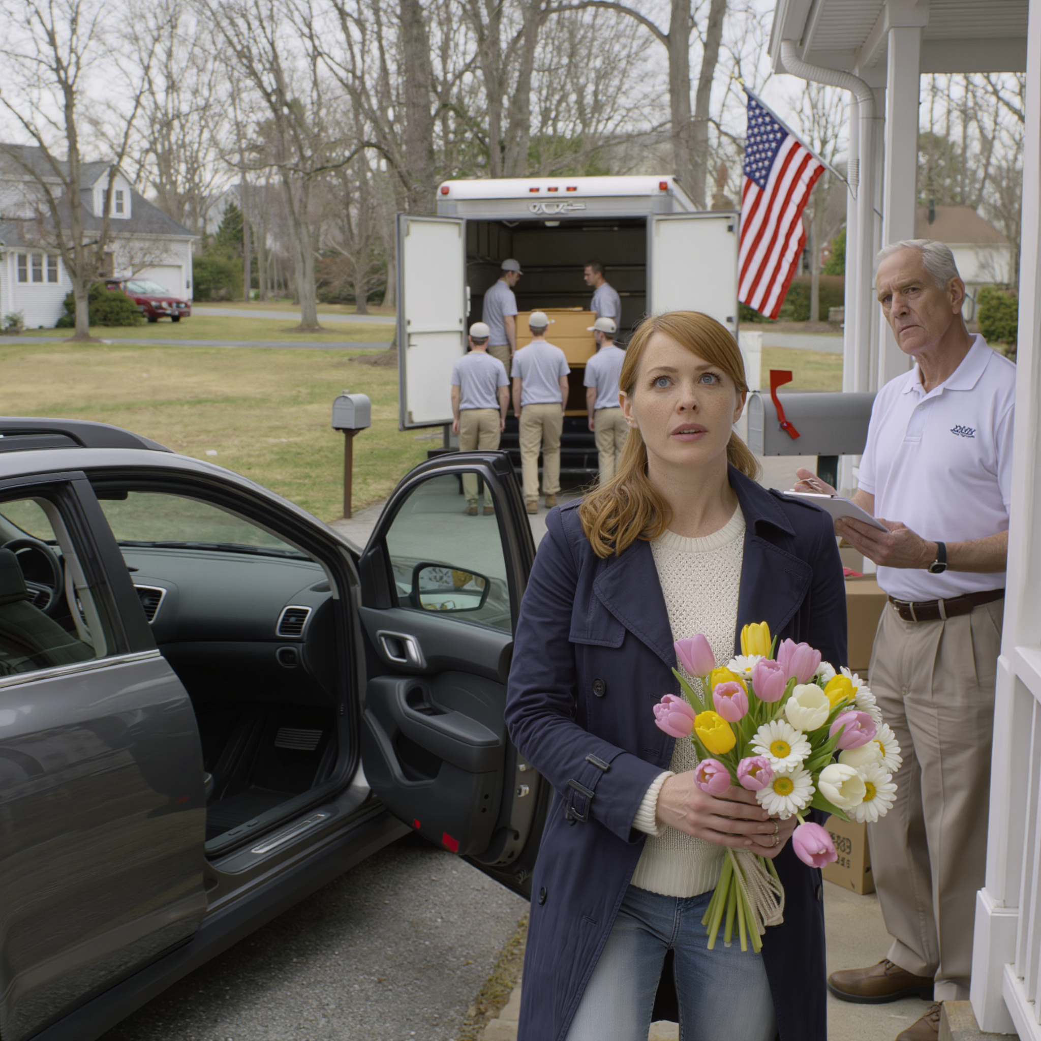 I stepped out of my car, still holding the flowers I hadn’t left at Karen’s grave because the cemetery was closed for maintenance. My hands were shaking, but not from the cold April air.