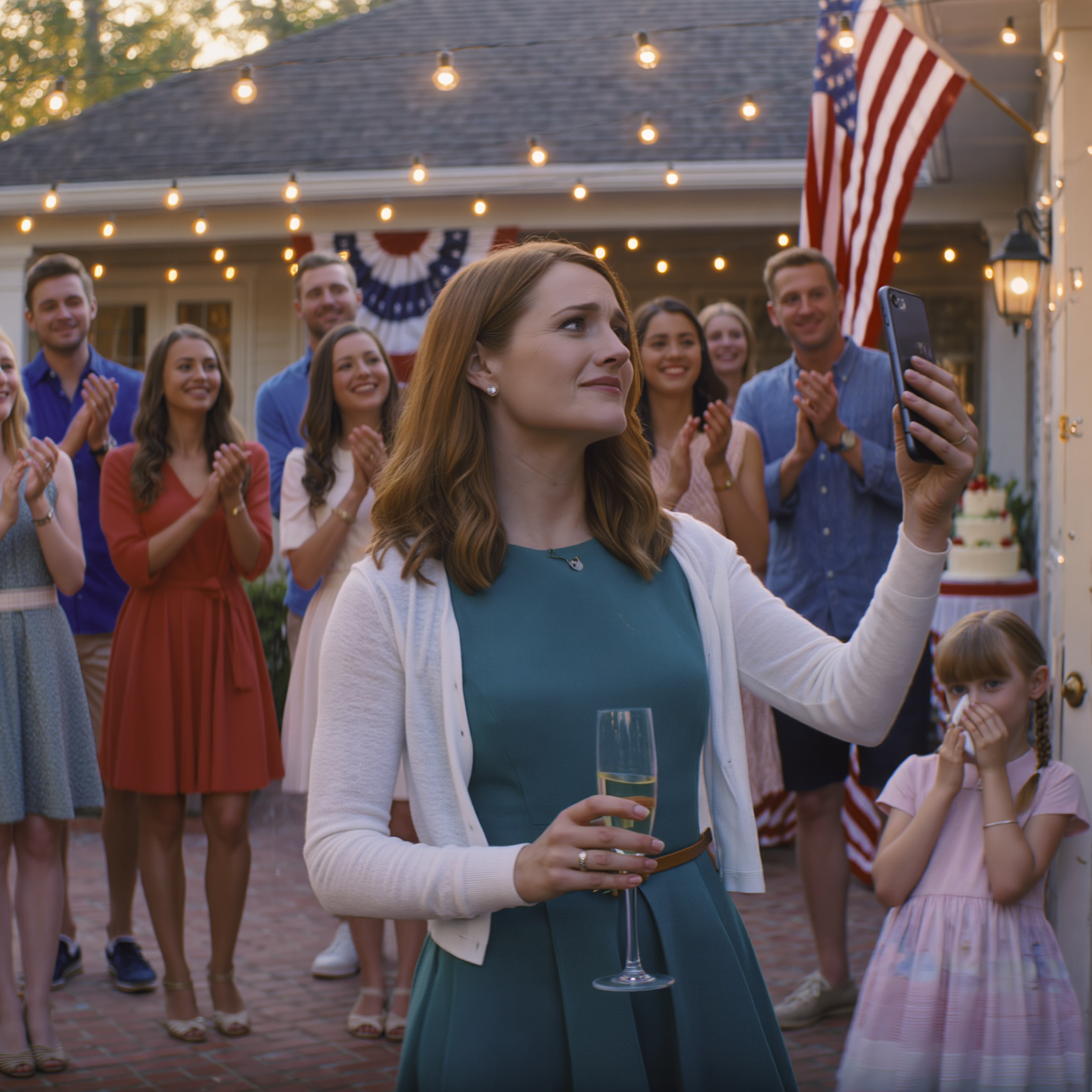 I pulled my arm away and walked to the front of the room. Everyone was still clapping, still celebrating, oblivious. I picked up a champagne glass and tapped it with a fork, loud enough to cut through the noise.