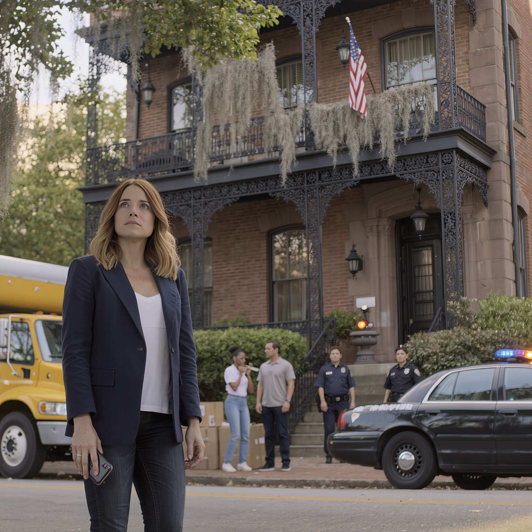 The yellow truck was half blocking the sidewalk, and two officers stood like a physical wall between my family and my front door. I parked across the street and stepped out, moving with a calm that felt heavy and absolute.