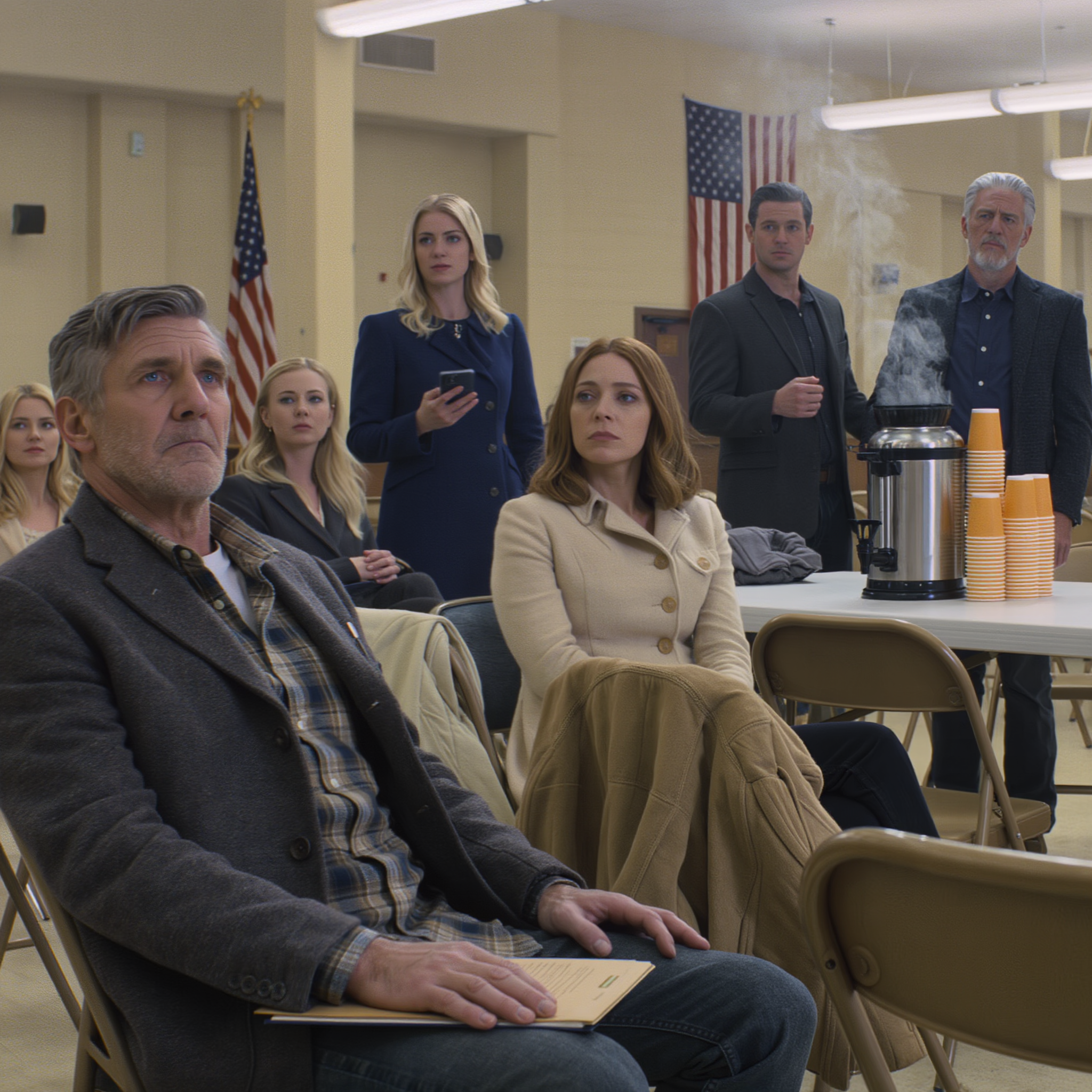 The folding chair under me let out a slow, ugly squeak, like it didn’t approve of what was about to happen. Burnt, cheap coffee hung in the air of that church fellowship hall, mixing with wet wool coats and a faint whiff of lemon cleaner. A wall clock ticked loud enough to count your mistakes, and I could hear somebody’s breath catch, somebody else’s wedding ring clicking against a Styrofoam cup.