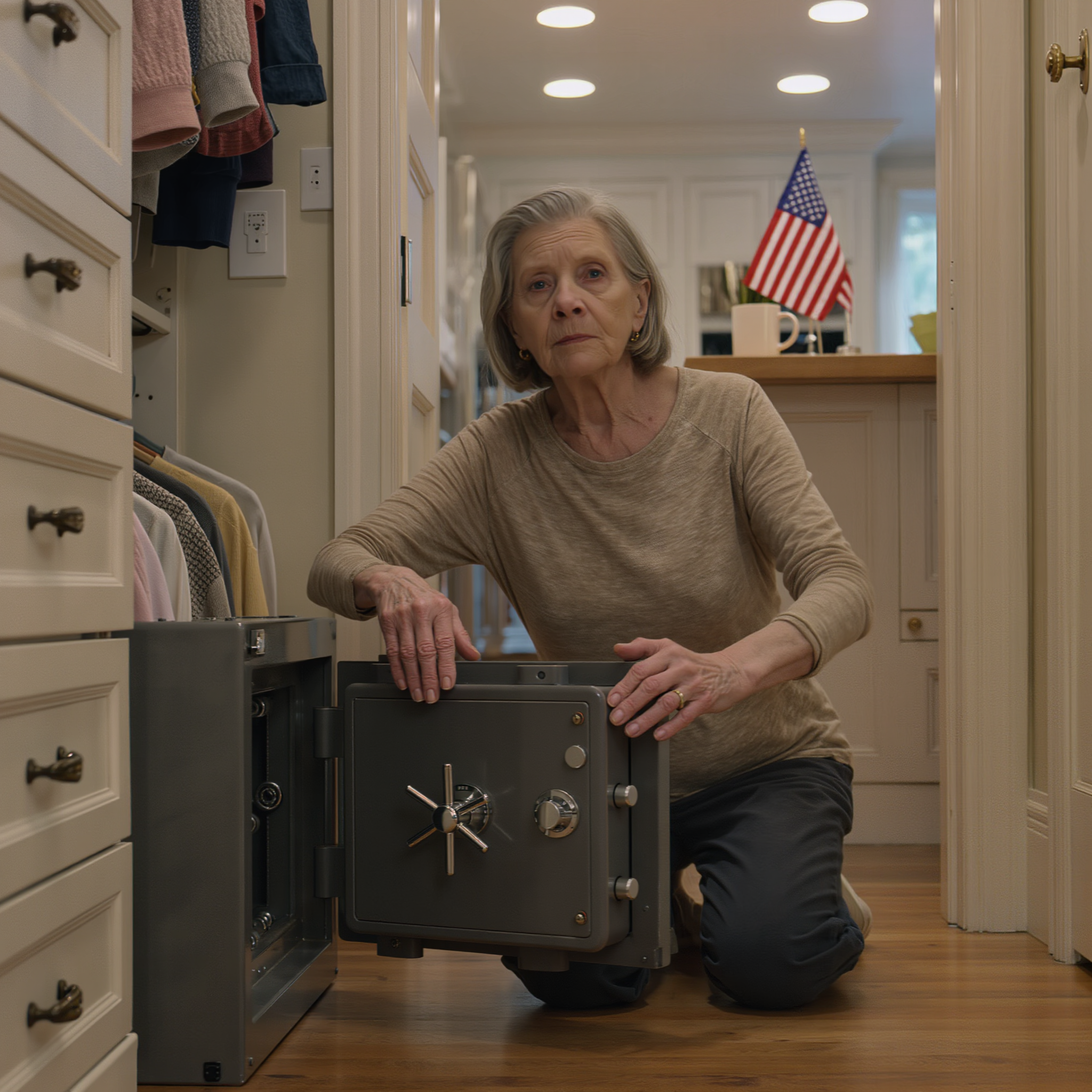 I moved on instinct, fast and unsteady, straight down the hall to my bedroom, past the walk-in closet, to the small safe I kept tucked behind hanging sweaters and spare linens. Ten years of saving lived inside that metal box. Ten years of double shifts. Ten years of telling myself, Just one more year. Just a little more cushion. My hands were trembling so badly I had to punch the combination twice because my fingers kept slipping.