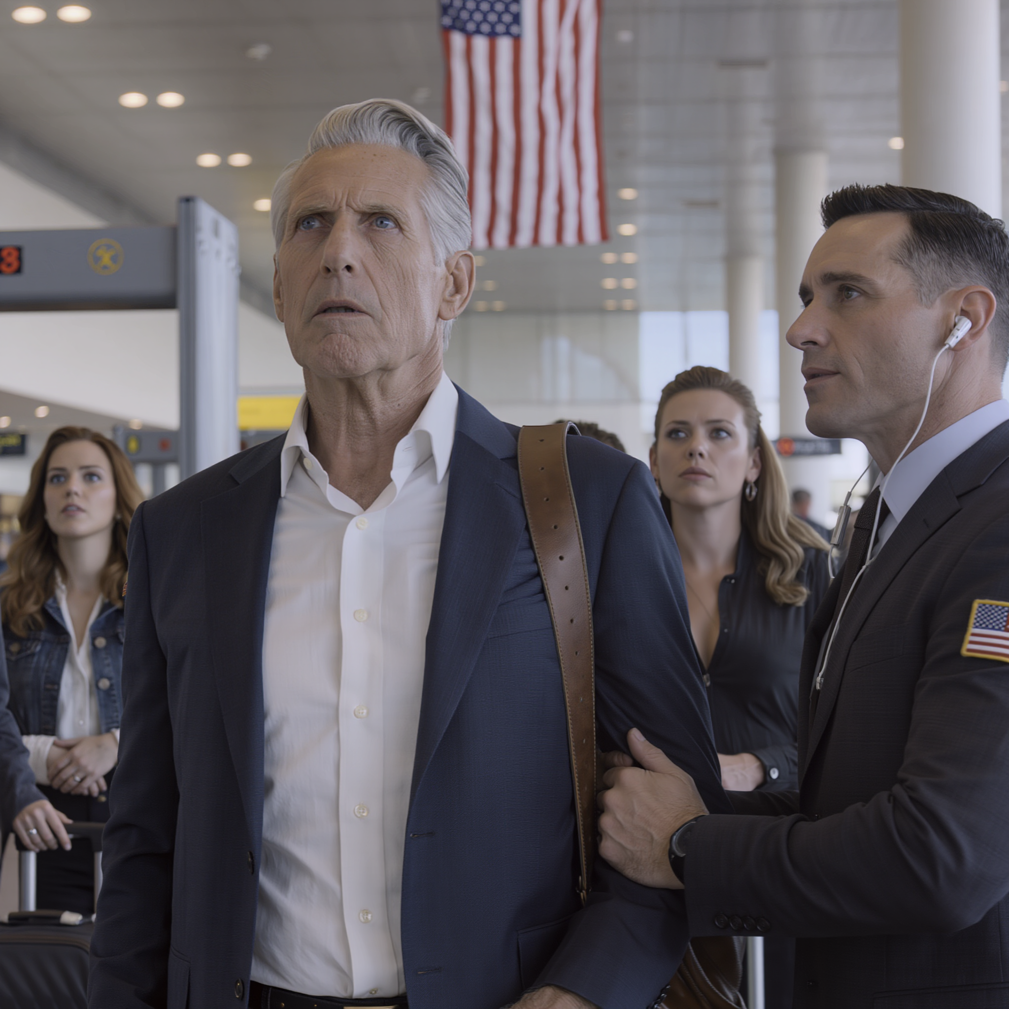 “Act like I’m arresting you and keep quiet,” he whispered, his voice barely audible above the airport chaos.