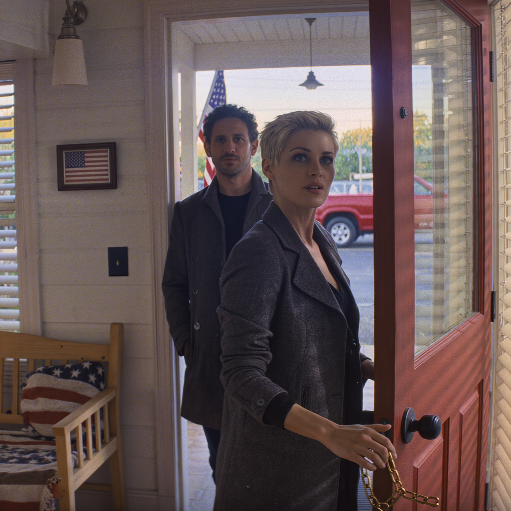 I called 911, barely able to hold my phone steady, and told the dispatcher someone was trying to break in. Another slam, and the chain lock ripped partially out of the frame, screws clattering to the floor. The pounding continued as I talked to the dispatcher, my voice cracking, my eyes fixed on the door like it might split in two.